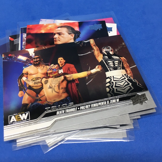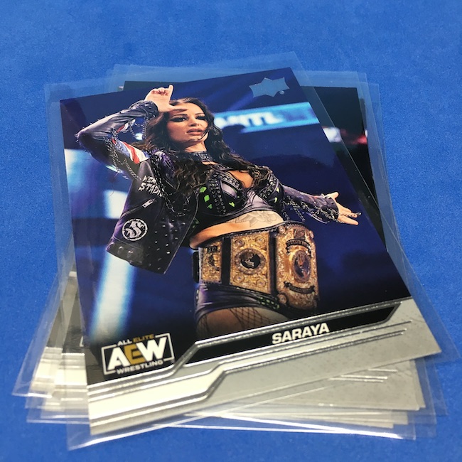 Rookie Cards – None are noted on-card via a RC logo, but anyone in base set without previous AEW, WWE, WCW, Impact, Panini Lucha Libre AAA or BBM (Japan) or Leaf in-pack cards is likely a RC here based on traditional definitions.