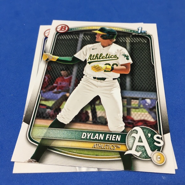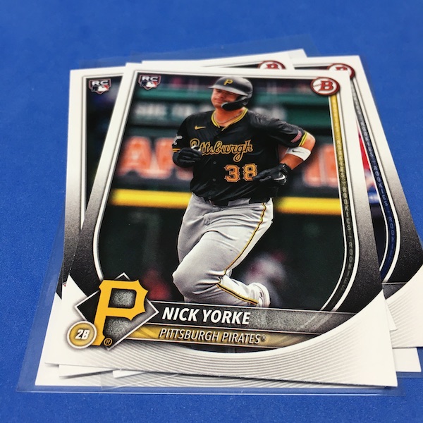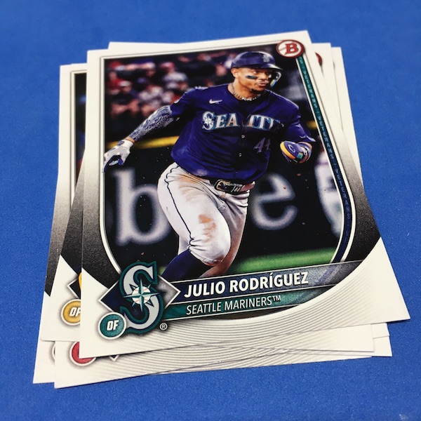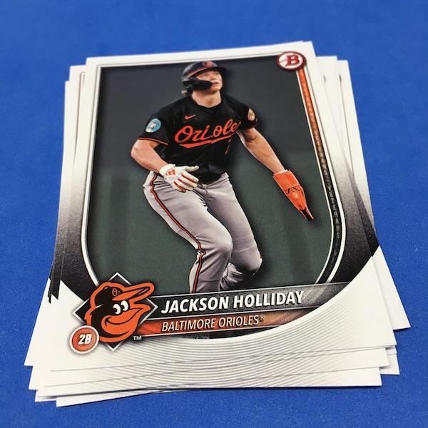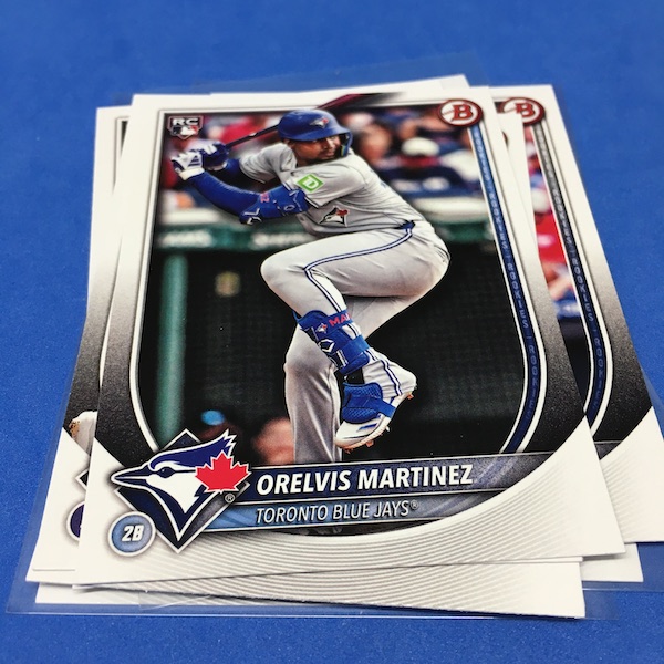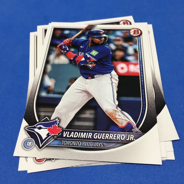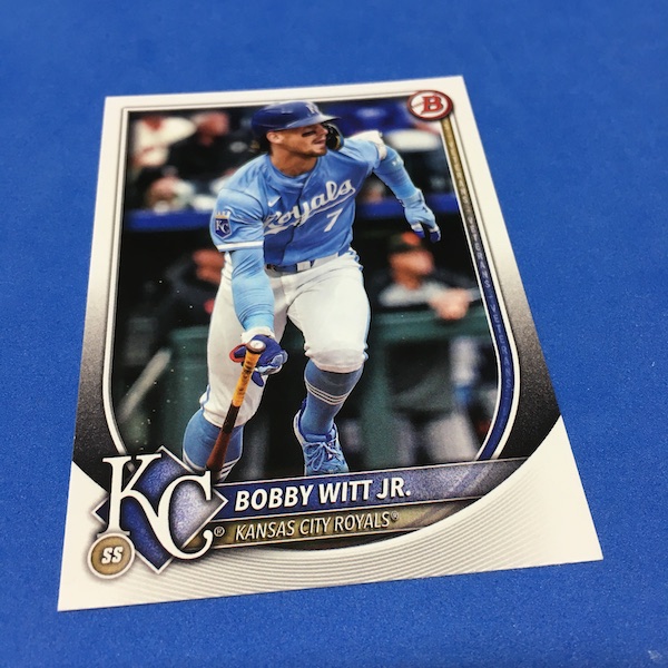 What's Buzz-worthy: It's been more than a year since I opened some standard Bowman, so a new year's release means, well, here's my one blaster. The look and feel is in the wheelhouse -- no real surprises there -- while the insert lineup here includes a little more variety vs. past years. (Fewer of the sets we see seemingly every year, with sone new looks in there, too.) The base set, base prospects and Chrome prospects formula is still in play, of course, and this box broke down almost exactly like last year's and it was a pretty standard break until I landed both serial-numbered cards in the same pack followed by a Jac Caglianone Chrome (though his debut was in Draft last year) and then some other good rookie names to find on inserts and base.To top that off, Bichette is perhaps my top everyday veteran I collect so the box gets an A, though it still didn't really wow me. Why? They still need to amp these up more -- yes, more -- since it's so reliant on base-like cards and parallels. Odds-wise, the Bichette is one in 356 packs and the Blue Shimmer is one in 450 ... how did they land in the same pack and, really, should parallels truly be that tough to find if numbered? Should stuff like these cards be one per two cases and one per three cases? Nah, and the simple answer here should be add more stuff and ensure the collation isn't wonky ... make all boxes stronger and more people will buy more than one. Or, as I said last year, make more variety, cough up more ... a larger set would still help balance it all out, too. ... Retail is the home of some exclusive Green parallels and can include autographs, too, but I wouldn't expect even numbered cards in every blaster. I think that would entice more rippers if they did -- or at least something that stands out as different from the rest of the box. There are a lot of long-odds cards that are interesting in this one -- and they're long in hobby boxes, too -- but perhaps tiering some of those rarities into an easy group and a tough group might make for better box to box finds that people can, you know, collect.