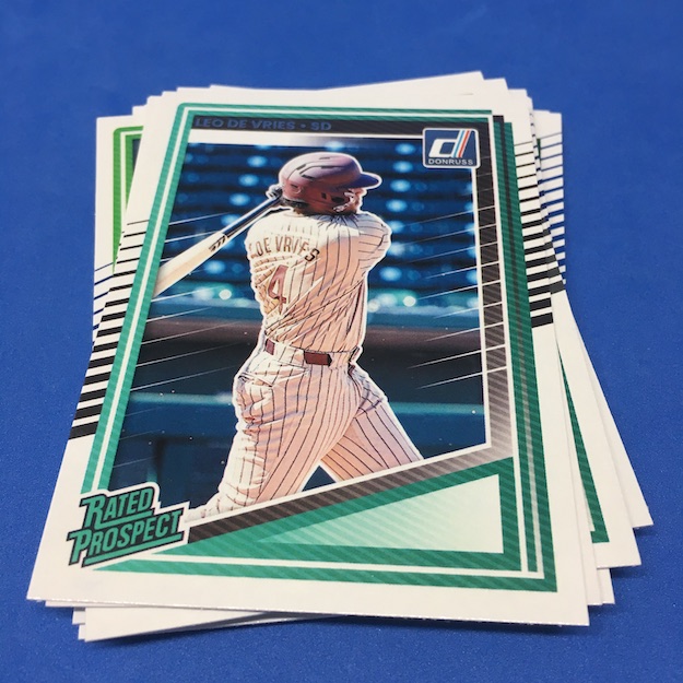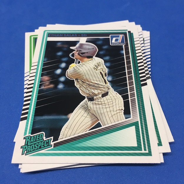 Rated Rookie/Rated Prospect cards (32) — Notables include Dylan Crews, Luisangel Acuña, Kumar Rocker, Colson Montgomery, Ethan Salas, Leo De Vries, Marcelo Mayer, Brady House ... see all in gallery. (Note: Technically, one could argue that all of these are Rookie Cards as they are numbered part of the base set and it's not solely a prospects/draft picks release.)
