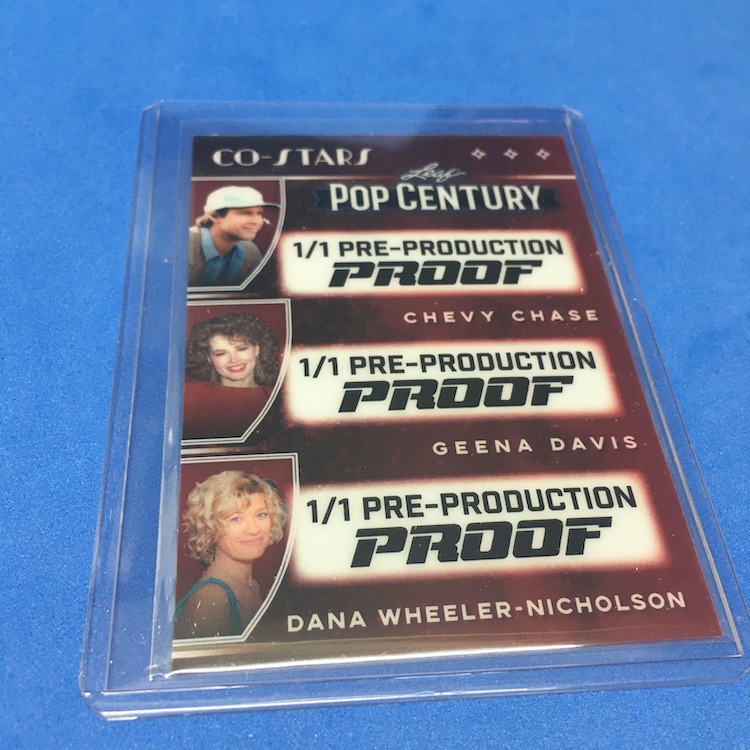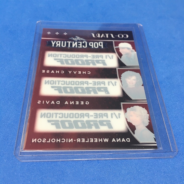 Leaf Metal Pop Century Co-Stars Three Signatures Red Flood Pre-production Proof (1) – Chevy Chase, Geena Davis & Dana Wheeler-Nicholson (from Fletch) (1/1)