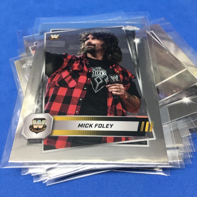 Base cards – Notables include Rhea Ripley, Shotzi, Trish Stratus, Lyra Valkyria, Dominik Mysterio, Cody Rhodes, Mankind, Bayley, Chelsea Green, Rey Mysterio, Kevin Owens, Mick Foley, Lola Vice, Iyo Sky, Jade Cargill, Gigi Dolin, Bron Breakker, Rob Van Dam, Finn Balor, Bubba Ray Dudley, Nia Jax and more ... see 'em all in the gallery below.