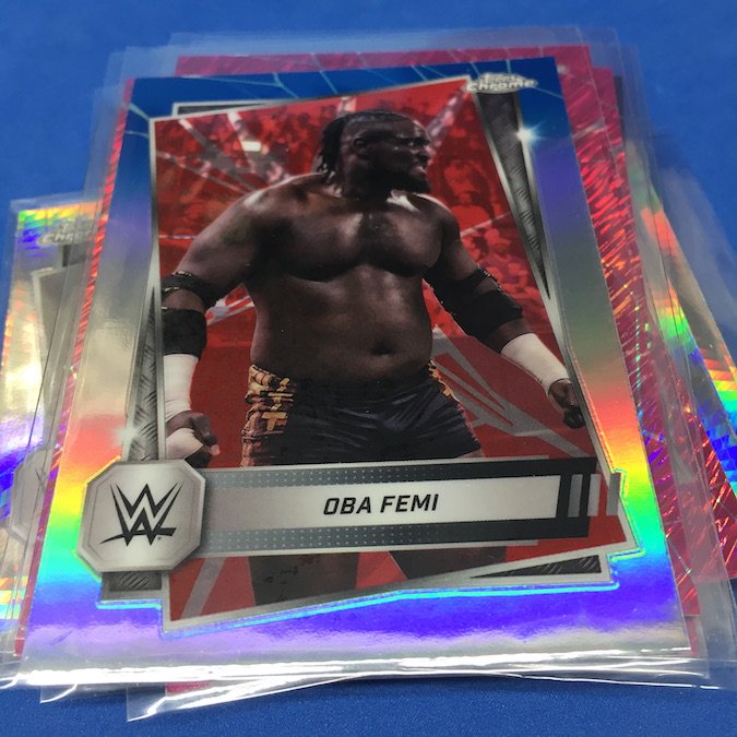 Red & Blue Refractors (4) – Oba Femi, Hulk Hogan, Jey Uso, Seth Rollins