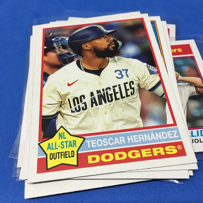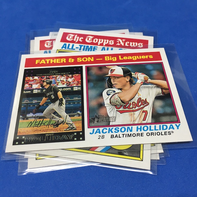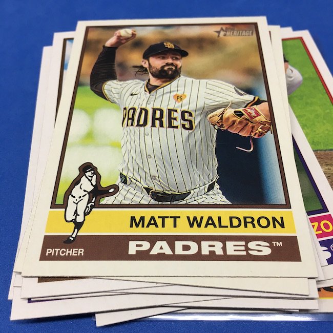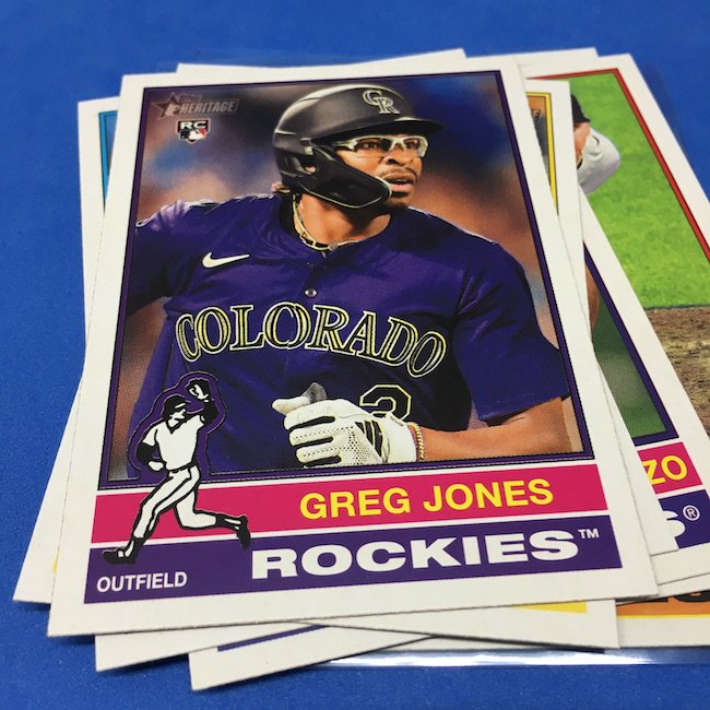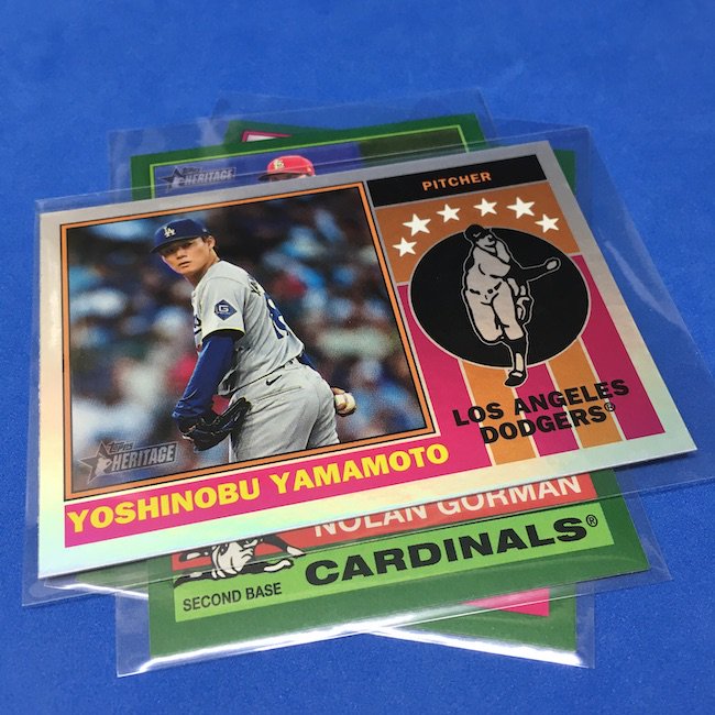 What's Buzz-worthy: I reluctantly added this blaster to a cart and the Cardboard Gods rewarded me with a hit box -- that Relic is one in 62 packs (eight boxes). It wasn't alone as the Yamamoto is one in 96 packs and the standard Refractor is one in every other box. Tack on some good rookies (though the Crews is badly centered) and top names among the rest of it and this was comfy and a win for the price and most stuff here was really clean for a Heritage box of recent vintage. Still not probably not a winner if I were a seller over the long haul, but at least it felt like a good box. This one also had almost twice as many RCs than my previous blaster. ... As noted before, there's more Chrome and more parallel action here and while it's a smidge forced it's been needed for Heritage for a few years -- those are more spots for potential big-name highlights to pop up in a smaller box, meaning most blasters here have a better chance at delivering something ... and that's what affordable retail boxes need these days, perhaps more than ever. Why? Collecting. This re-visitation of the 1976 Topps set -- a crisper and cleaner version of a set that, to me, evokes 1970s Ford Motor Company stylings ... an industrial, but crisp feel a la an old LTD car or something but not quite as clean and sporty as a Mustang. Gone are the weird colors and that garish font of 1975 with those traded in for some quirky cartoons on the fronts that are perhaps the only thing that's not clean and relatively timeless here -- but they do immediately draw it back to the original. Gone are most of the issues that made last year's Heritage rough -- the backs are readable here, the collation seemed clean and no overwhelming issues from printing and packaging other than maybe some rough edges at times... but even that wasn't as tough as the last few years.