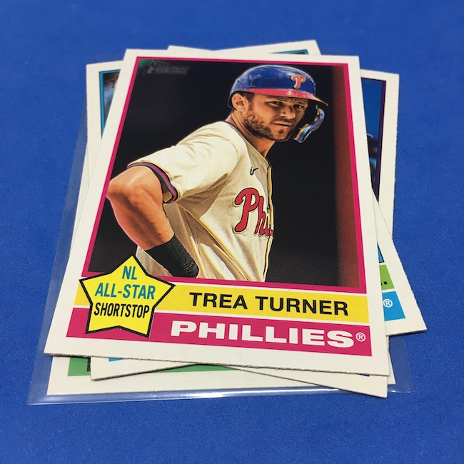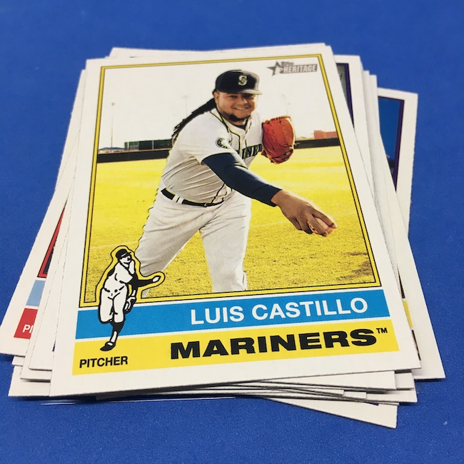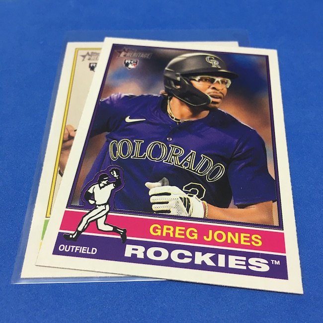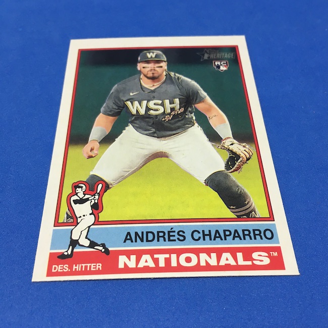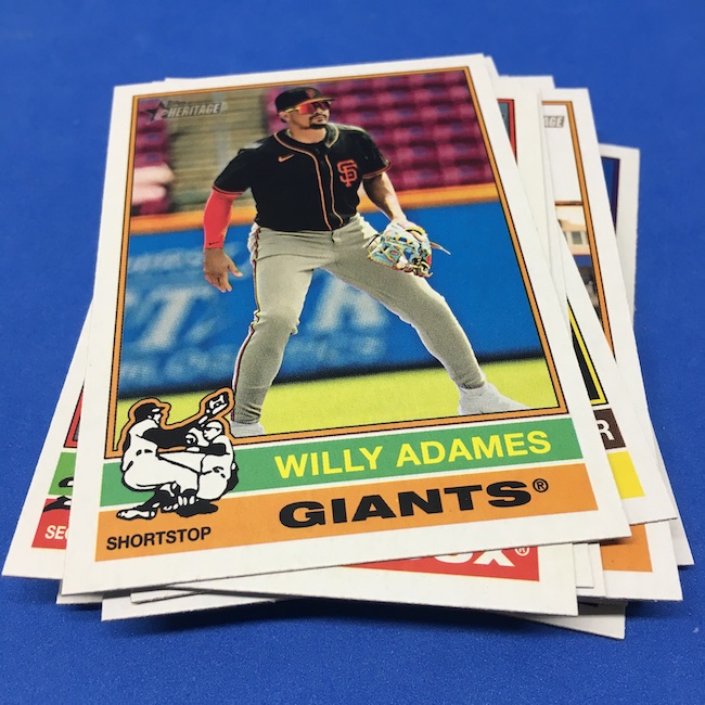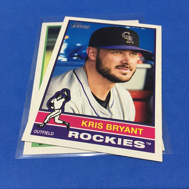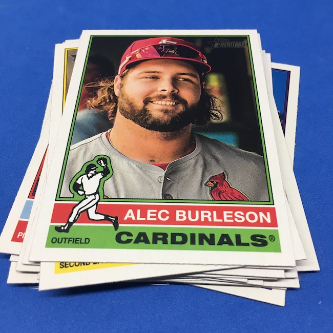 What's Buzz-worthy: With my Series 2 in-hand look delayed until tomorrow, here's my second from a recent new stash of Heritage hangers ... a little less oomph here vs. last time but overall still improved over recent years. It appears in many cases you land a pair of Chromes and then some added inserts and an SP every time. In past years, an 0-for or one or two inserts/SPs total would be in here and then the rest base. Now, ultimately, it's not that far removed from the past but the variety here is up, albeit mostly being via parallels. That's still got potential with notables in the base set but you will hit common names often with it being 500 cards in the set that are paralleled. ... This re-visitation of the 1976 Topps set -- a crisper and cleaner version of a set that, to me, evokes 1970s Ford Motor Company stylings ... an industrial, but crisp feel a la an old LTD car or something but not quite as clean and sporty as a Mustang. Gone are the weird colors and that garish font of 1975 with those traded in for some quirky cartoons on the fronts that are perhaps the only thing that's not clean and relatively timeless here -- but they do immediately draw it back to the original. Gone are most of the issues that made last year's Heritage rough -- the backs are readable here, the collation seemed clean and no overwhelming issues from printing and packaging other than maybe some rough edges ... but even that wasn't as tough as the last few years. ... I'll rip more of this one this year than I did last year that's for sure.