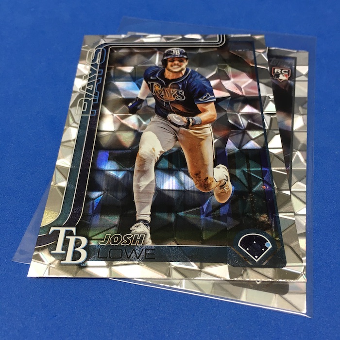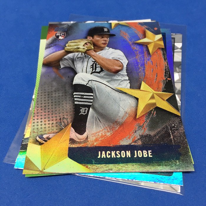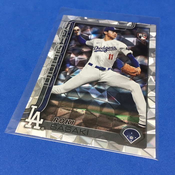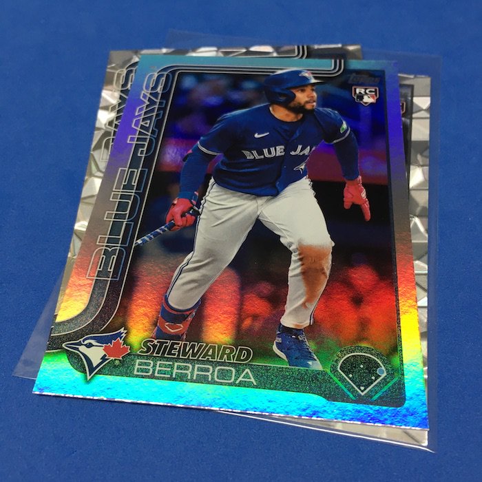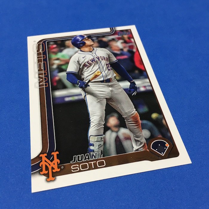 What's Buzz-worthy: Does one card make a box? In a way, it does here -- at least in terms of potential. That Diamante Roki Sasaki is a solid find with two of those in most boxes and 350 cards in the set you can do the bare bones math to see how tough it is to pull specifically him in one of these packs. An early eBay sale? A cool $40 ... not so much lately. That said, I've liked the funky look of that new parallel and have pondered whether to grade a few good names I've found out of Series 1 but hadn't ... barring any surprises once I give it a closer look, this might end up slabbed as a lightly iconic pull of 2025 for me. (He's not really delivered just yet ... but I've also not ripped that much overall vs. the past.) These packs might be the best way to go for the price -- a blaster has more cards but might be a dryer break while my trio of these packs showed there is potential ... this isn't my best of my first three. ... As I've noted before, the foilboard effect is back on every single card but instead of going dark on the borders it's a mash-up of 1982, 1984 and 2019 with a light modern look this time around. Does it work? Yes. ... The new Diamante parallels bring some funk -- they're different and I don't mind them -- but the lineup of what's in these packs is ultimately the same as last year with the Stars Of MLB cards once again carrying more retail weight -- so it definitely still needs more variety. ... If you like what you see, rip into jumbo for your best results with a guaranteed autograph and Relic and maybe more. This pack -- thanks to one card -- was a decent start.