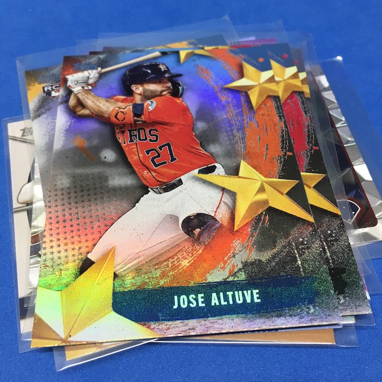 What's Buzz-worthy: Simply put, this ain't the norm. The selection of base cards was pretty rough after Ohtani and the rookies were, too, after Sasaki ... but the inserts made up for it with a few cards that shouldn't be easily found all lining up in the same pack. (Collation flub? Statistically, it seems like it and this was a lot more insert action than my first one.) Gold here is one in 14, Pink one in 12, Duos one in six. The rest were pretty much the norm but I landed some key young names across the board -- some hotter than others but, overall, this was an A+ box. ... As noted before, these packs might be the best way to go for the price -- a blaster has more cards but might be a dryer break while my trio of these packs showed there is potential. The foilboard effect is back on every single card but instead of going dark on the borders it's a mash-up of 1982, 1984 and 2019 with a light modern look this time around. Does it work? Yes. ... The new Diamante parallels bring some funk -- they're different and I don't mind them -- but the lineup of what's in these packs is ultimately the same as last year with the Stars Of MLB cards once again carrying more retail weight -- so it definitely still needs more variety with a normal pack but this one was stronger. ... If you like what you see, rip into jumbo for your best results with a guaranteed autograph and Relic and maybe more.
