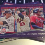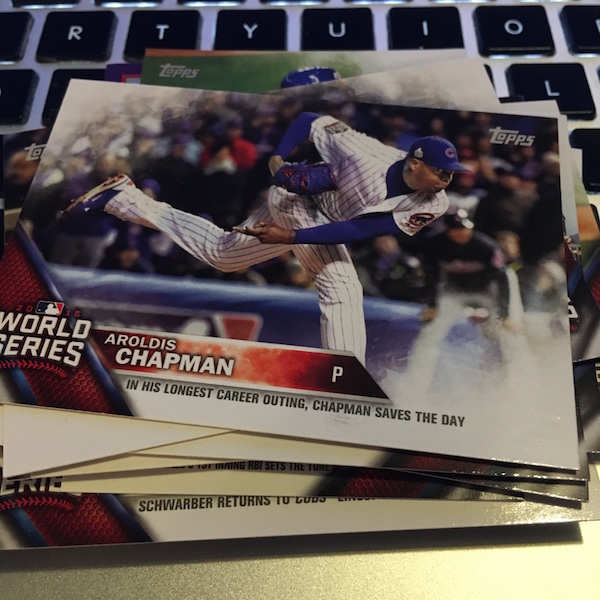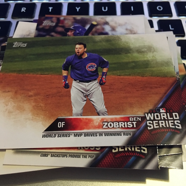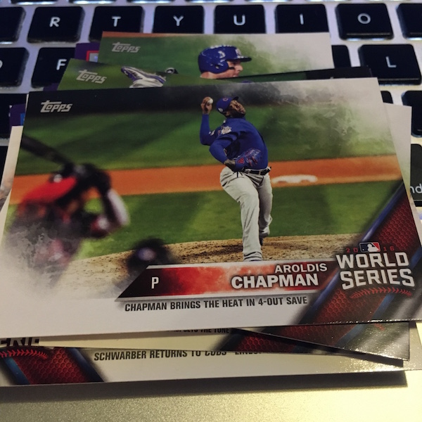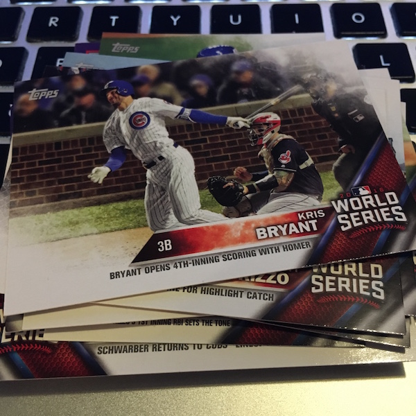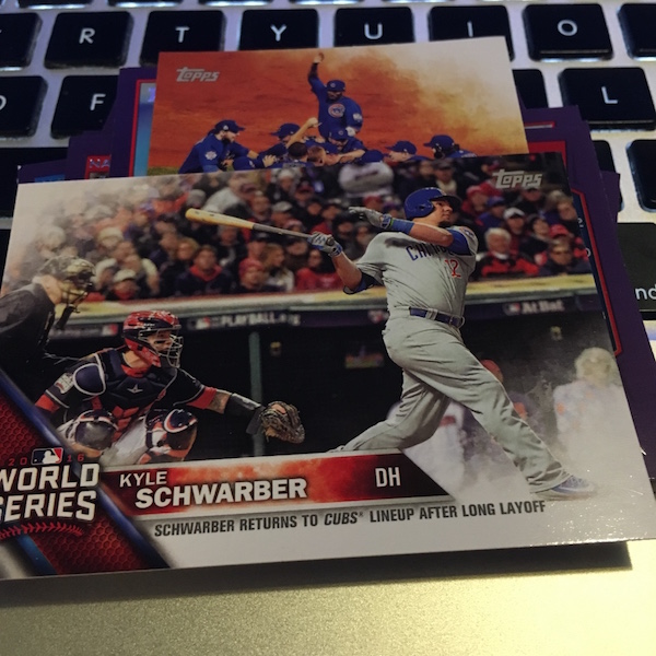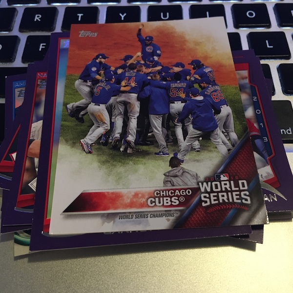 What's Buzz-worthy: Repacks seem to get some extra attention from you guys so the curiosity of this one got me a bit easier for a break here. These promise some basics and a couple of hits and it delivered pretty well -- enough that I'd probably try it one more time to see whether it's up or down compared to this one. I prefer repacks with more packs than loose cards but this one was a little stronger in that all of the cards were from 2015 and forward, mostly Topps' various flagship series, with a smattering of inserts, short-printed cards and a even a couple of numbered insert cards. It also over-delivered on the guaranteed Purple (Toys R Us-only) parallels with nine instead of just three. Another surprise? The first 15 cards of the 25-card Chicago Cubs World Series sets that have been floundering in retail bargain bins (and probably should all just be sent to Chicago instead). I don't dislike the look of those cards -- and I got the stars -- just don't need it. However, that was a bit of a surprise to find here as these types of repacks can often be filled with stuff from the 1980s and early 1990s instead of newer stuff. The only drawback of what was here was there were a number of cards that showed corner and edge issues as if they might have been from jumbo rack packs that got thrown around at retail before arriving here. (It happens ... but is noticeable when you land a solid insert with an issue.) The hits here were fun surprises. The Pete Rose autos aren't pricey but I certainly could have done worse here and I got a memorabilia card of a reliable guy -- a multi-time Gold Glover -- too. The packs will likely vary but there's potential there, too, with the USA pack here being a hobby pack and the Topps pack being the home of a loaded rookie crop. The Purple cards and the years in this one are both places where notable cards could be found -- whether they might have been pulled out I don't know -- but there's potential here on the relative cheap if the card aisle doesn't have what you went looking for.