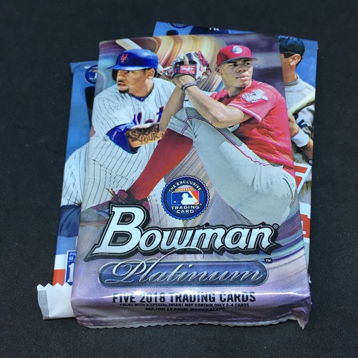 -- Three sealed packs -- 2019 Topps Series 1 (2) and 2018 Bowman Platinum (recognized as "hobby" on repack wrapper)
