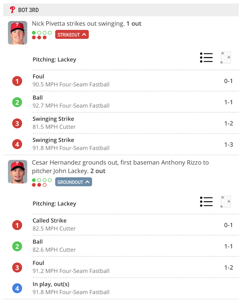 The matchup: Cubs SP John Lackey vs. Phillies P Nick Pivetta ... and Lackey vs. C Cesar Hernandez