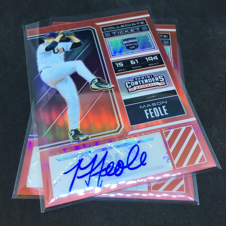 2018 EEE Contenders Collegiate Tickets Signatures Red (3) – Daniel Cabrera, Mason Feole, Braden Shewmake (/100)