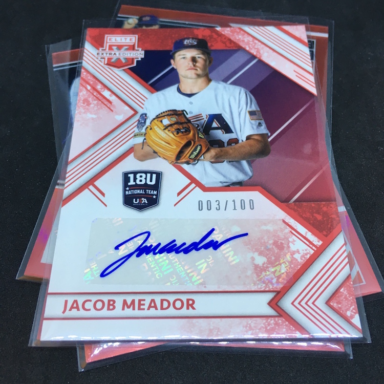 2018 EEE 18U Signatures Red (4) – C.J. Abrams, Jacob Meador, Tyler Callihan, Brennan Malone (/100)