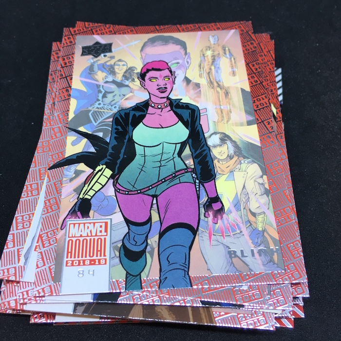 What's Buzz-worthy: I pretty much was done with these but a couple tweets where a collector landed three solid mem/autos and also sketch cards in these, I figured I'd give it one more try. Why? The ink was top-tier. Three of my four boxes were the standard stuff while one included a Comic Con Avengers promo card as well as a pack with an additional manufactured Relic inside. The Captain America card probably pays for one of the boxes while the Iron Fist patch is more pack-priced based on one place I looked. While it was fun to see something different, nothing here hit it big. It happens -- but not in my experience. ... These retail repacks are super-cheap one -- just $9.99 -- and it still seems like there could be some potential here. There are apparently autos, sketches, memorabilia cards and more potentially to be found here which isn't bad for the price -- though there are a lot of sketch cards and autos that you can find for under $10 these days.
