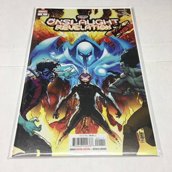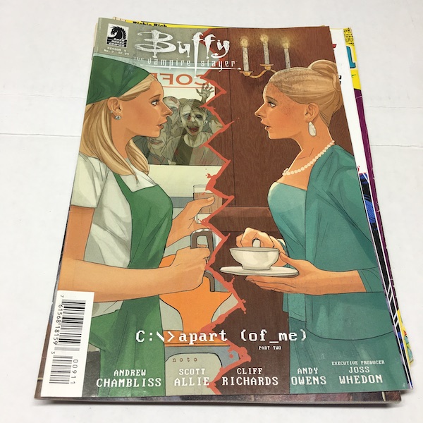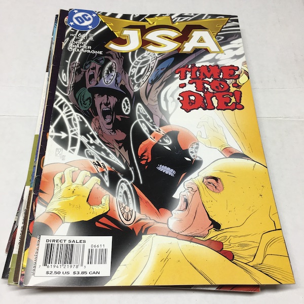 What's Buzz-worthy: This is my second one of these and this time it was a mix that dipped further back into vintage years -- books that carry a good oldschool feel but not as much value as one might think in lower conditions but still cool -- and then some newer stuff with the only drawback that some of them had surface rubbing and stains from shipping. (One of the panels of my box got popped pretty good so I think stuff was moving around inside the box a little more than normal ... it happens.) All in all, for the price and the bonuses I still liked this one and there's a small shot I may do a third. Why? Affordable volume and a mystery scenario ... that's fun to me and it never hurts to add a little variety into a collection. ... Now, some facts from last time ... I found this via a California comics chain called Collector's Paradise with these boxes guaranteeing all there is above for $49.99 plus shipping. (An original price was double that ... I wouldn't bite at that one.) Buzz loves a good mystery box on the cheap, so I figured why not with the bonuses seeming interesting as, well, I don't have a big comics shop nearby to do bargain bin digging. (Plus, I'm way too selective if I did ... it would be a lot of the same few titles or areas.) This allowed me to pick up a good volume of books across the board to see styles, characters, designs and more from publishers of the past and present. ... The variety this time once again was good, though a few were rougher fillers (a definite minority) or discolored older books. The books arrive in a box without bags or boards -- except for the bonus books or signed books so that helps them stand out -- so there can be minor damage here and there. I'm very casual as a collector of comics -- essentially, I'll sort through these and then do some bagging and then put the better ones together and then box 'em all away. At the price, these are pretty good for a newb like me (card guy who's dabbling) or for a re-seller on the cheap or in similar smaller lots. I think I found some nice books here again. Besides, I've found some really good books in past repacks -- this month's Making The Grade included two big books I found in scenarios just like this and I have a couple other notables from repacks in CGC's hands now.