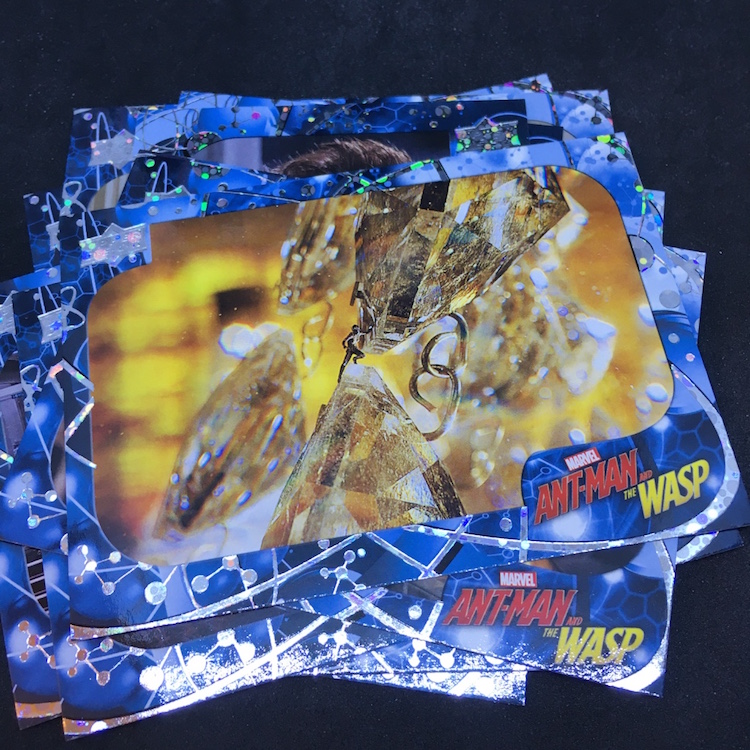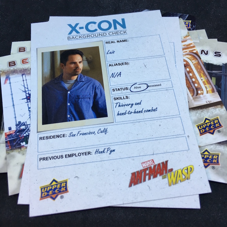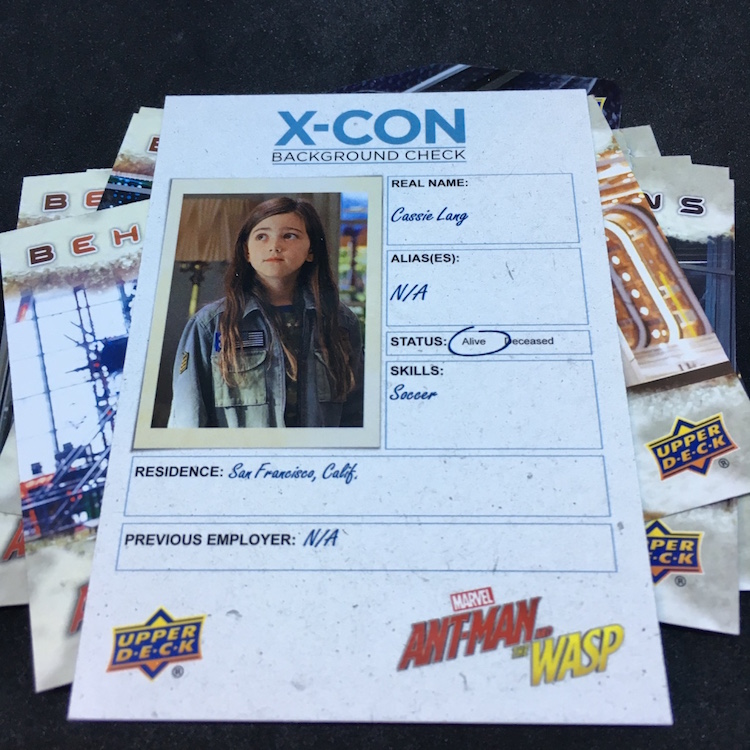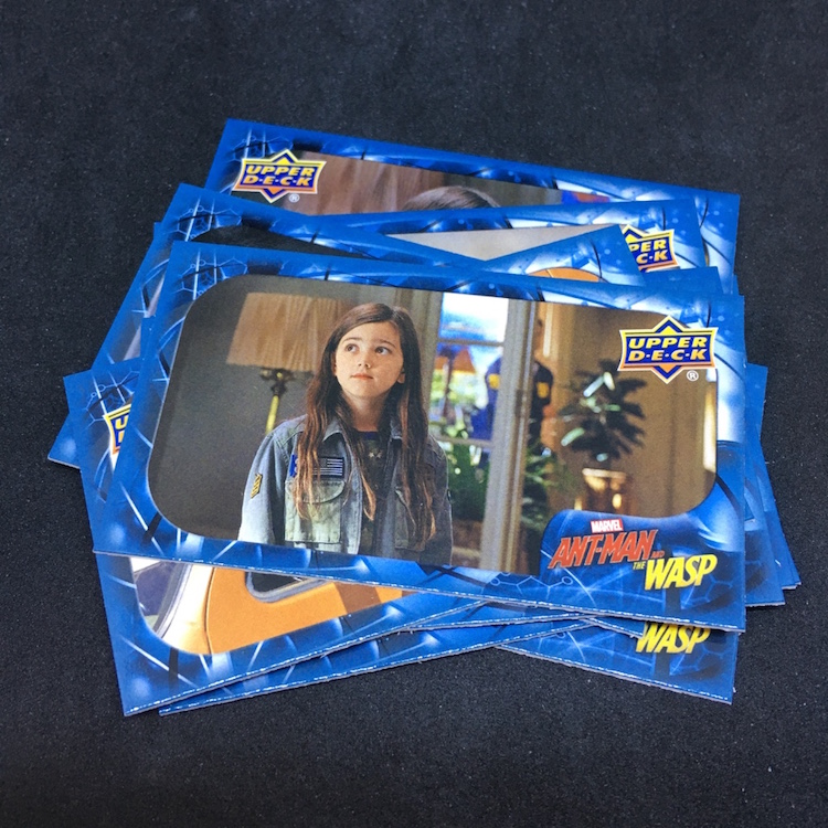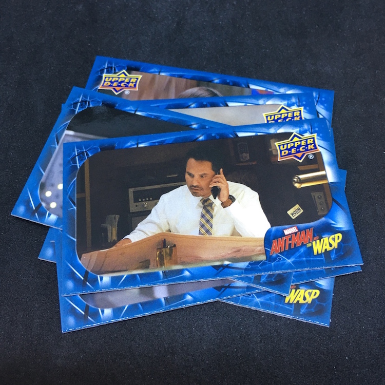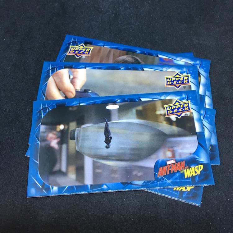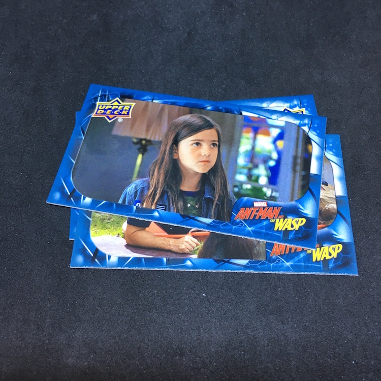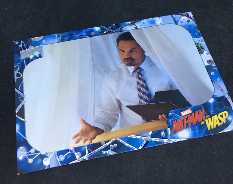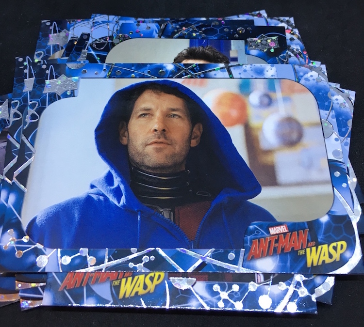 What's Buzz-worthy: With so many of the recent Marvel (and DC) movie being on the darker side, this second Ant-Man film has been played a few more times than others for Buzz and that led me to revisit this past release. The boxes are small -- and the ink is not the easiest of finds -- but I figured I'd rip in. Money-wise the results were break-even at best but my two memorabilia card are of lead characters so that didn't sting as much. Autos and sketch cards are both found four times per 16-box case but neither type was found here -- and even landing those aren't that big of a deal in a number of instances as there are some cheap autos to be found among the bigs. (Lilly ink is on the checklist, Rudd ink is not.) Also in the mix here are printing plates, auto-mem and triple-mem cards as well as mini autos and other ink. The subject list for signers feels small and the overall lineup is, too, but that does feel kind of appropriate here if you know the characters.