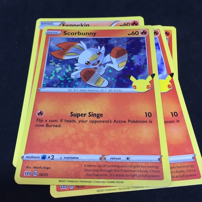 Base cards – Grookey, Charmander, Fennekin (2), Scorbunny, Oshawott