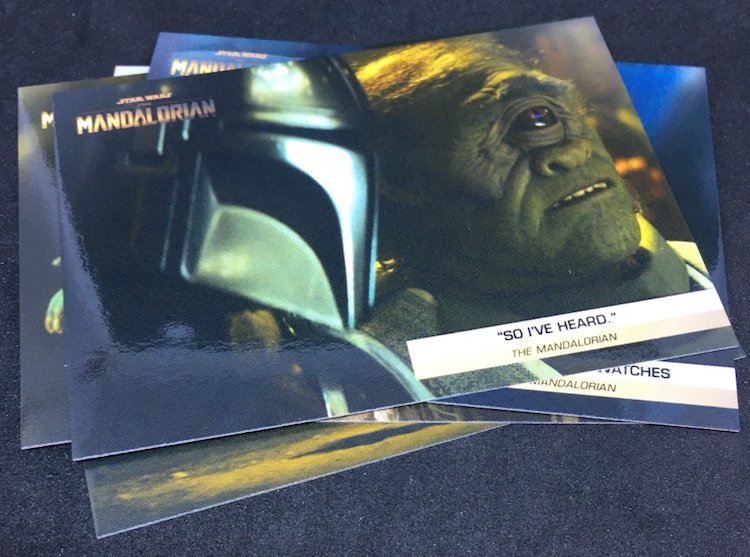 What's Buzz-worthy: Just 1,482 copies of this set were made and my four arrived today as an end-of-day surprise that affirmed my bunch ... we have our first Sasha Banks Star Wars trading card appearance here. Banks, a WWE star for the last several years, is a mysterious figure in the trailer -- no details here so no spoilers -- and it could be a sleeper kind of card depending on how this season goes. (She's allegedly in all of the season's episodes the last I had read.) That card also might be a key in other ways here beyond two big pop culture streams crossing here (Ghostbusters-style) with WWE and Star Wars as two of my copies had surface streaking damage with the gloss out of four. (See last photo in the gallery.) Oddly, it happened only on that card -- none of the others -- in four sets. The set is pretty simple with two Baby Yoda appearances and other scenes from the recently released trailer you can see here. I haven't checked the secondary market on these but the Banks card seems like a big deal -- and you should know how big Baby Yoda has been on cardboard in the past. For the relatively affordable price, this one could have been an easy winner if you picked up a few. (As for mine, I'll perhaps grade my Banks cards for my WWE stash.)