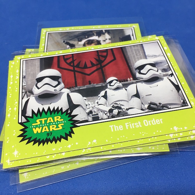 Character Silhouette Holofoil (10) – Rey, Chewbacca, Captain Phasma, Finn, Flametrooper, Stormtrooper (2), Poe Dameron (2), Kylo Ren