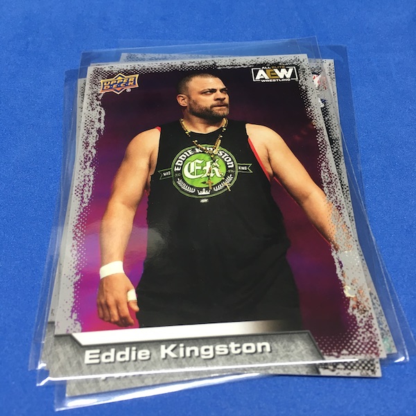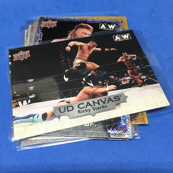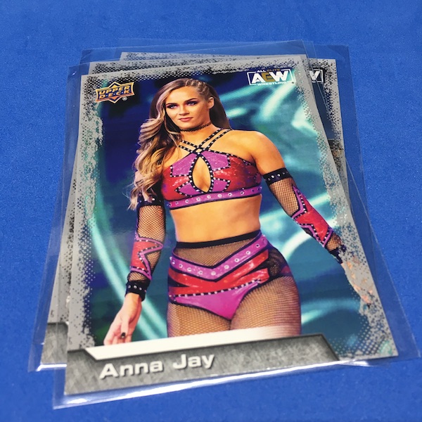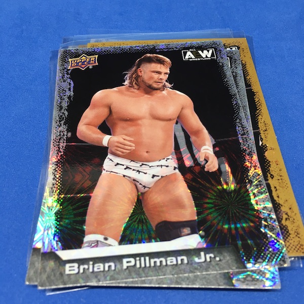 Box 1 -- Three 2022 AEW retail packs, one 2021 Topps Finest WWE retail pack, one 2017 Topps WWE Series 2 retail pack, one 2019 Topps WWE Road To WrestleMania value pack (six packs)