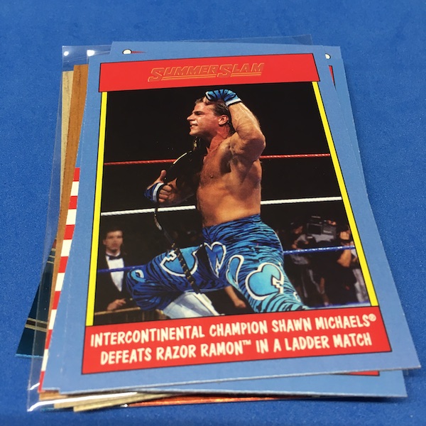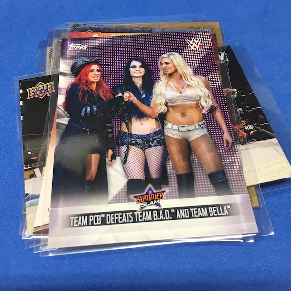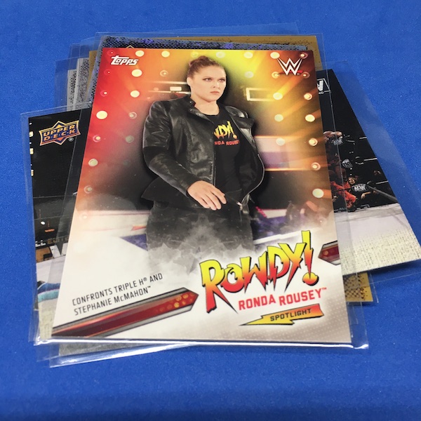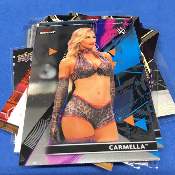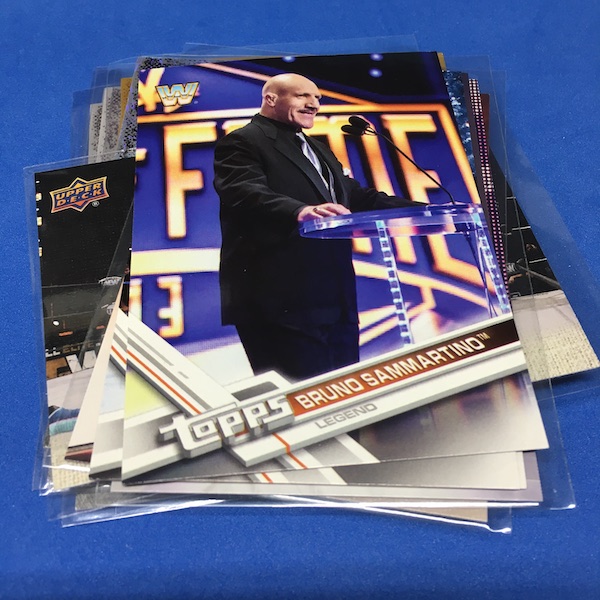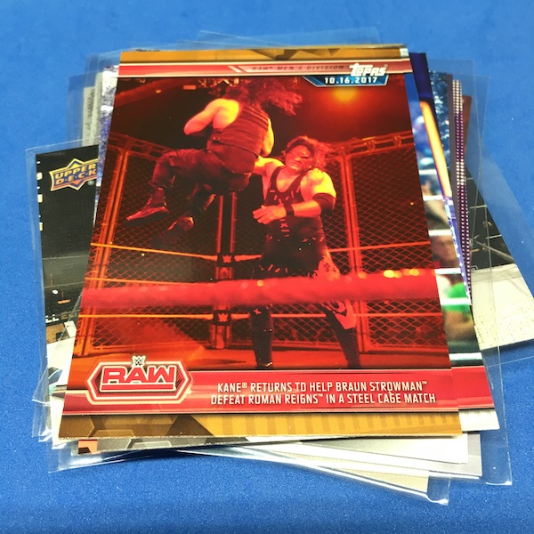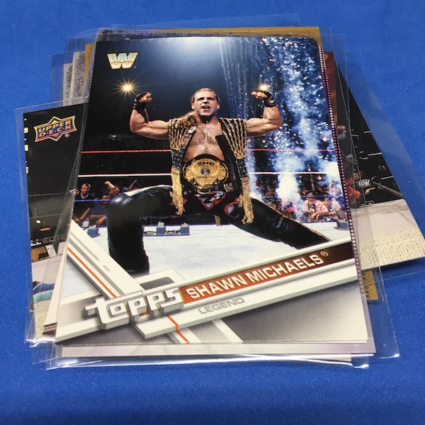 What's Buzz-worthy: I will bite on a mystery box easily -- and perhaps on a wrestling mystery box even more easily -- but these premium-priced boxes didn't even precisely deliver what they stated as basics (one had an extra pack) with the apparent mystery items in both being a slightly larger value pack. ... I sat on these for months now but saw a collector talking about this one so here we are. The boxes are big -- more than a foot wide -- but the contents of both of mine combined would together fill a blaster box with some room for more. (A bigger box is needed if the bonus items are blaster or hanger boxes as teased.) Had these been $19.99 or less (in some recent years, repacks with more than these were around $10) they would be fine but these stung a bit (and not in the good Sting way but he was in there) ... but I pretty much already opened all of these releases when it was all new so there's that, too. The prices on these boxes are not as high as they are for other more-traditional sports and there's likely a lot less of WWE stuff than other sports in reserves to make these repacks, but they were a miss for me ... but, that said, there can be returns here if you find something rarer, too. ... Sure, there are some names among my finds -- that's inevitable -- but this one ultimately didn't include anything that can't be found on the cheap and it was hitless and there wasn't even a serial-numbered card in the mix, either. For a beginner or a collector, it's still all good ... but this one was also hitless so anybody else would have perhaps been ready to rumble ... though these retail packs could still include hits -- just not that likely given the odds. Would I open again? Maybe ... but my first impression here was more Shockmaster than it was Stone Cold and not in any kind of legendary way. I'd be more apt to dabble with other low-end clearance-bin stuff first.