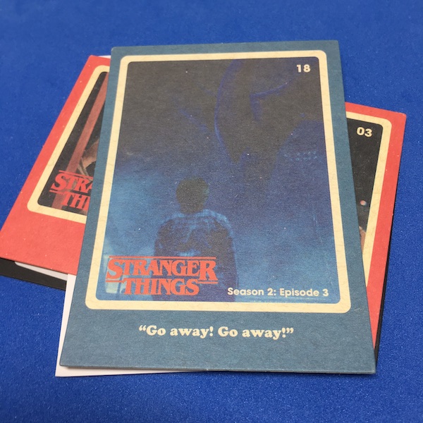 What's Buzz-worthy: My last two of these delivered yet two more figures I hadn't found yet -- no dupes at all among my several buys here -- and I landed pretty much all unique cards, though I did have duplicates on that front across all boxes opened. ... As I said last time, I'm not sure how big the set is here but I dig it -- heck, I don't even know how new or old these are as they are firmly from the toy section of the world and not the card section -- but I really like the meshing of retro-styled cards and miniature vinyls for this hit Netflix franchise. Even better here? You can find these for $10 a pack/box (whatever you want to call it) and the lineup is all the toys you see above plus a chase figure. How much do I like these? After ripping into two, I opened eight -- and you can see them all here if you poke around in the archives. Why? I think these have some fun potential in a few directions -- and some interesting eBay auctions, too. (Some are trying to get a premium on the Millie Bobby Brown card since her name was spelled wrong ... but I don't think it got corrected. Don't pay that price.) ... The inclusions are meant to keep younger fans busy with a couple of those cards, turn the plastic TV into a display with other cards and then show characters and moments in traditional card form, too. I think hybrid products like this could have a growing place in the card world for sports ... but who might try it?