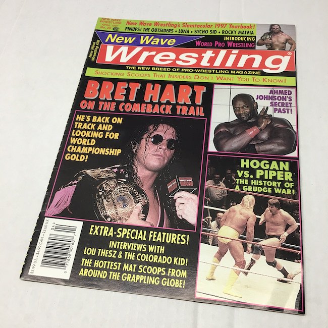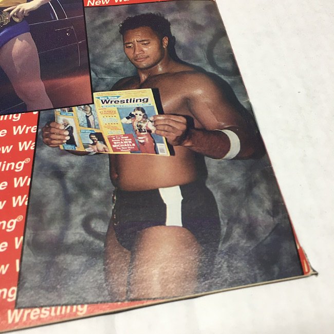 Why it’s Buzz-worthy: This trio of magazines are from what I'd say is a lesser title -- no offense, it's just not a WWE mag or Pro Wrestling Illustrated (I normally stick to those as a collector) -- but one thing that did catch my eye here was the run of slightly campy back cover photo montages that showed stars from all companies posing with copies of the magazine or wearing gear with its logo. Cheesy but I dig it -- and these three got my money as each of them showed a WWF newcomer named Rocky Maivia perusing the publication. Interestingly, all three of these are from before his first main front-cover appearance on any wrestling magazine of any kind (that was in Buzz Buys last time ... poke around in the archives).