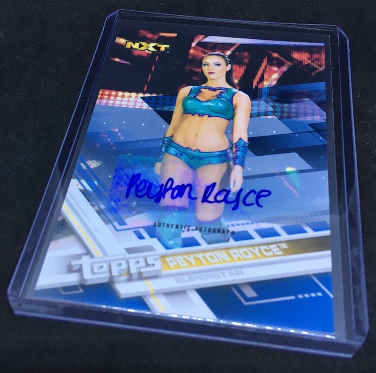 The Card: Peyton Royce 2016 Topps NXT, 2017 Topps NXT Autographs (2), 2017 Topps WWE Blue Autographs (/50), 2018 Topps WWE Series 2 Blue Autographs (/50)