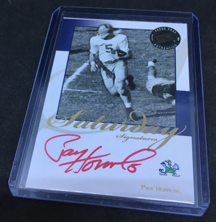 The Card: Paul Hornung 2008 Press Pass Legends Saturday Signatures red-ink version (/46 announced)