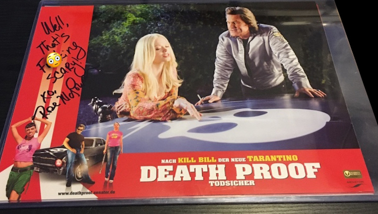 Why it’s Buzz-worthy: This Quentin Tarantino movie can be a squirmer in spots and that's the point as he and Robert Rodriguez teamed up to re-create the low-budget exploitation theater experience with Grindhouse back in 2007. Collecting movie materials (easier-to-store lobby cards and press kits, at least) are something I dabble with and this one was on my radar for a while to find something. It turns out that this lobby card set is mostly oversized -- the small ones are 8-by-12 and the bigs are 12-by-16 -- but they are colorful and bold without the foreign language aspects being too prominent. (Some cards will have the film's name in a different language, which makes them less appealing to me.) While I would have grabbed this set no matter what if the price was right, I did have to pony up a bit more when I found this one last year. Why? the first one is signed by McGowan and inscribed with her line from the scene that's shown. That's where Stuntman Mike (Kurt Russell) explains the features of his stuntman car to her. What's the story here? Well, Mike's a serial-killer and his weapon is his car ... and two groups of friends find out what that's all about. It's a crazy classic if you ask me -- and you might recognize a few others from his cast who have been in other roles and have other card appearances, too. This one still felt like a decent deal -- or even better -- as the show authenticator charges about $150 for her signed pieces.
