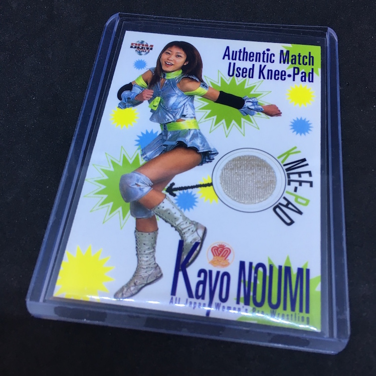 Why it’s Buzz-worthy: This was one of a couple of cards I picked up sometime last year when the wax options were lean and the "explore the hobby" juices were flowing. I happened upon a dealer who deals exclusively in Japanese wrestling cards exclusively on the women's side and picked up this one since, well, I'd never seen a memorabilia card like it ... a knee-pad card. Kayo Noumi apparently last wrestled back in 2005 but this pick-up was all about the type.