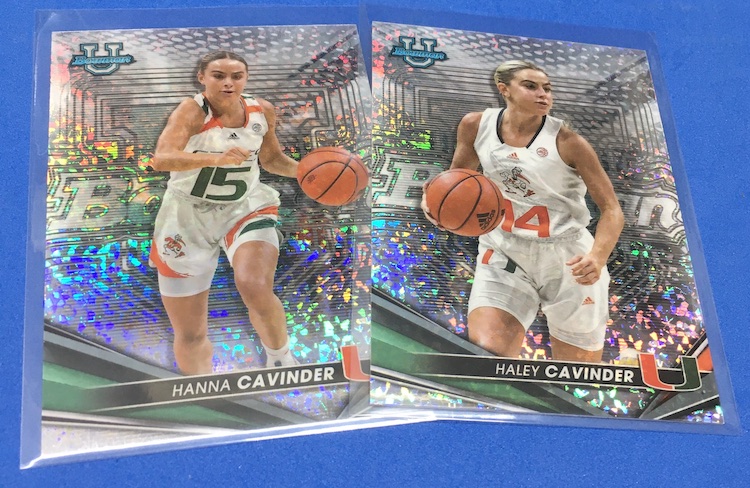 The Card: Hanna Cavinder & Haley Cavinder 2022-23 Bowman University Best Mini-Diamond Refractors (/299)