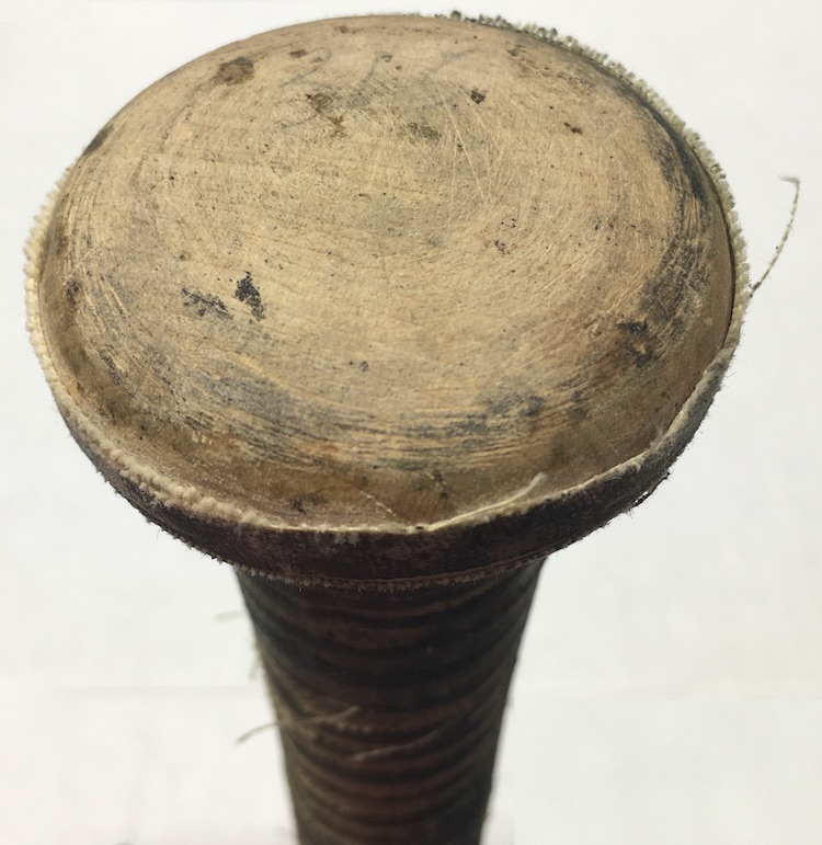 Why it’s Buzz-worthy: I picked up this gamer so long ago I'm not sure exactly how much it cost me -- I can't find my records for it via a simple search where I buy -- but that delay has a reason behind it. I let it sit for some time as I intended to try and research more to see if I could find a photo match but gave up. The tape job is absolutely his -- I own many of his bats -- but the blank knob is perhaps on the rarer side of things from the Oakland days. That sticker LVS branding on maple dates it to later in his Oakland run vs. early on -- the company moved to that instead of branding and it has evolved beyond even that in the last decade.