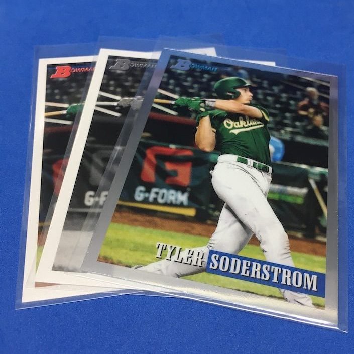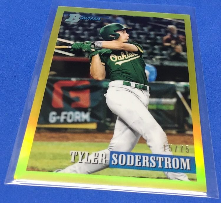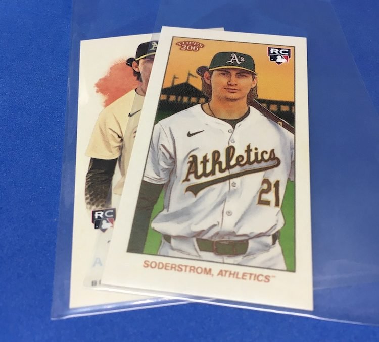 The Cards: Tyler Soderstrom 2021 Bowman Heritage Rookie Card plus Black & White, Chrome and Yellow Chrome (/75) parallels plus 2024 Topps Allen & Ginter Mini Rookie Design Variations & 2024 Topps 206