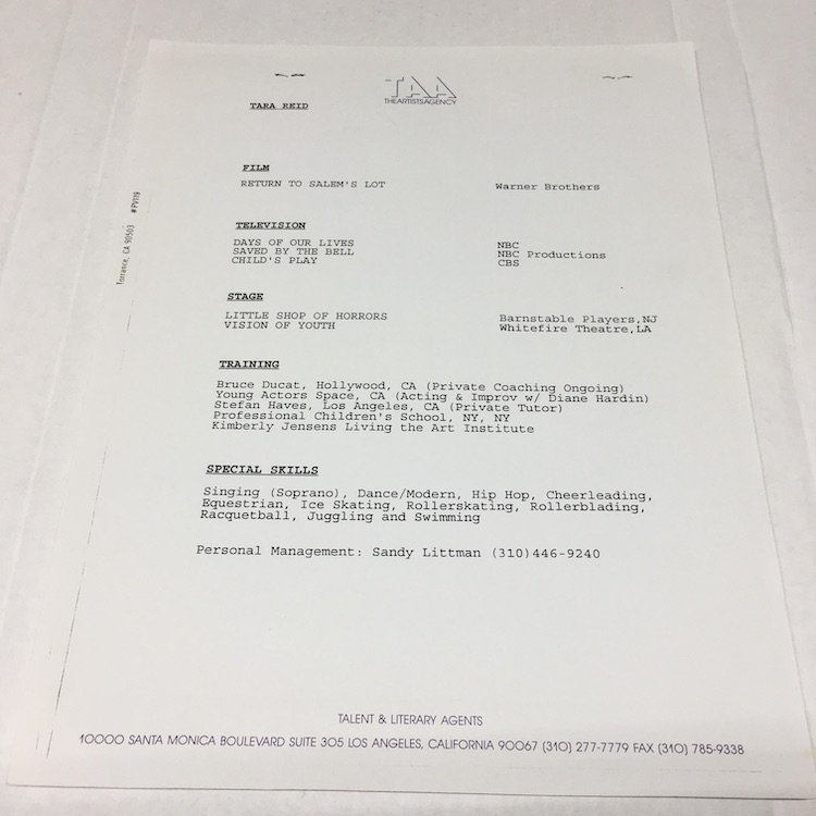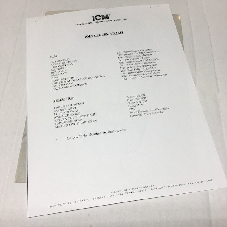Why it’s Buzz-worthy: You can see more stuff like this series in the archives -- I picked off a number of audition photos and resumes from a dealer with apparent insider access and literally thousands of these available. Could stuff like this be faked? Sure, but would a faker literally staple photos to the pages for a sale of less than $5 in many cases? It's plausible but I doubt it. In the pre-digital days, printed photos like this were produced and sent out in volume as agencies aimed to land spots for their talents. Also interesting here can be the credits compared to IMDb and the varying looks from photo to photo for particular names and the changes between those and the credit sheets. They're like cards in that way and you can roughly date images to when based on stuff that's showing -- or not showing. I need to go dig around and look for more of these. I've found some with fun crossover appeal -- WWE star Roddy Piper when he went Hollywood for example -- and even one that appears to have a "vintage" hand-printed name done by the celeb (Eliza Dushku) on past ones in the archives.