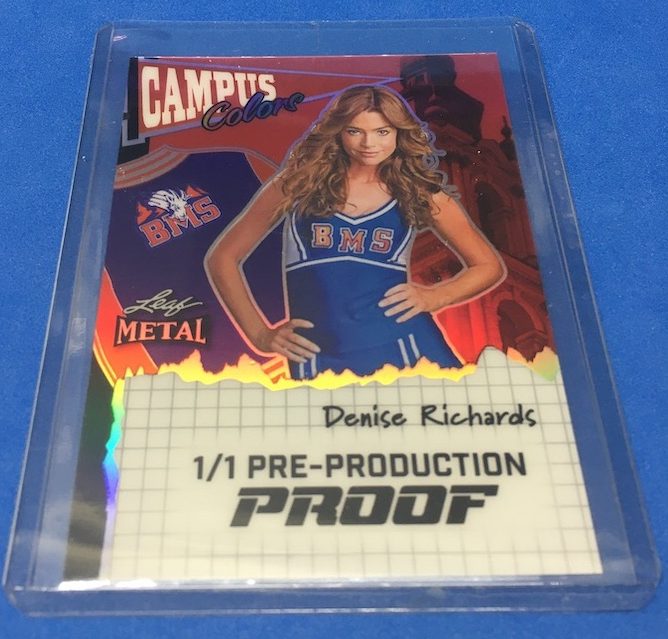 The Cards: Denise Richards 2024 Leaf Metal Blue Mountain State Campus Colors Black Wave & Prismatic Autographs Pre-production Proofs (1/1s)