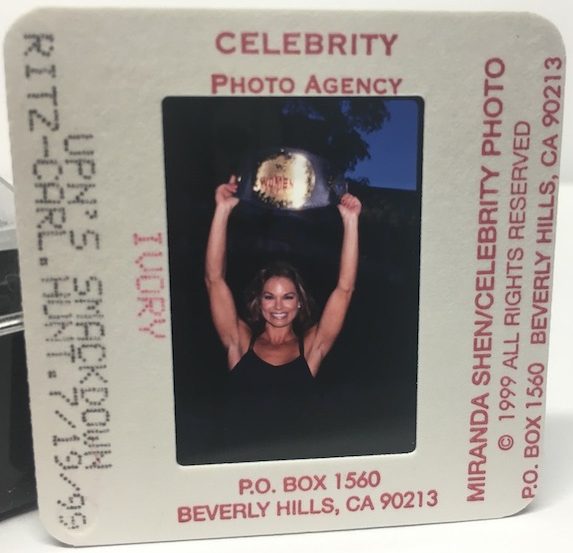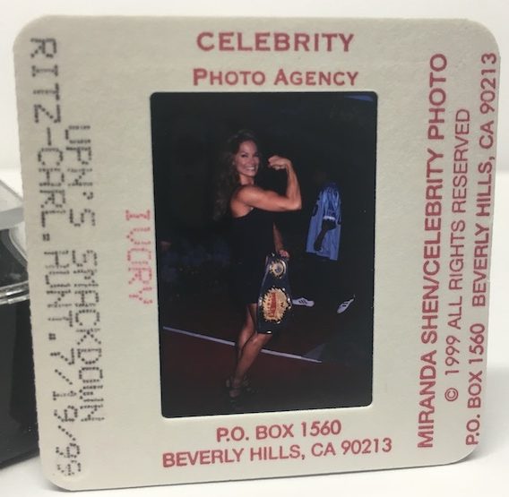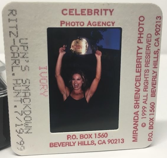 Why it’s Buzz-worthy: This dozen slides of the former WWE star and future Hall of Famer popped up on a deep, deep dive of celeb media slides with the seller grouping names as lots. The price here was perhaps a tad high but seeing a familiar name before WWE stardom made these interesting to me. The poses are mostly (but not all) variations of the one seen here, which would work as simple photos for various weightlifting/fitnesss/bodybuilding mags, books, calendars and posters (etc.) back in the day. Meanwhile, the shooter, Rob Sims, actually was the chief photographer for a few magazines back in the day (or still to this day I'm not sure what still exists). This was from March 2000 when she was working the fitness/weightlifting competition realms, meeting the likes of Trish Stratus and Torrie Wilson who were doing the same along the way. She made her in-ring WWE debut less than a year after this and after some added training was a TV regular for WWE from 2002 to 2009.