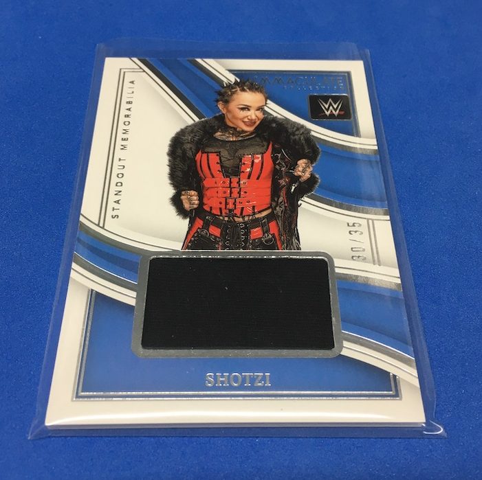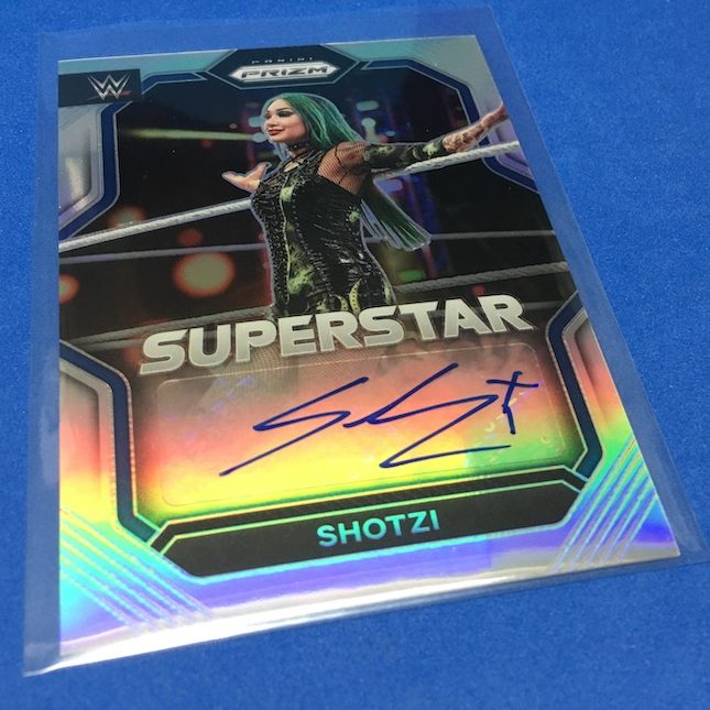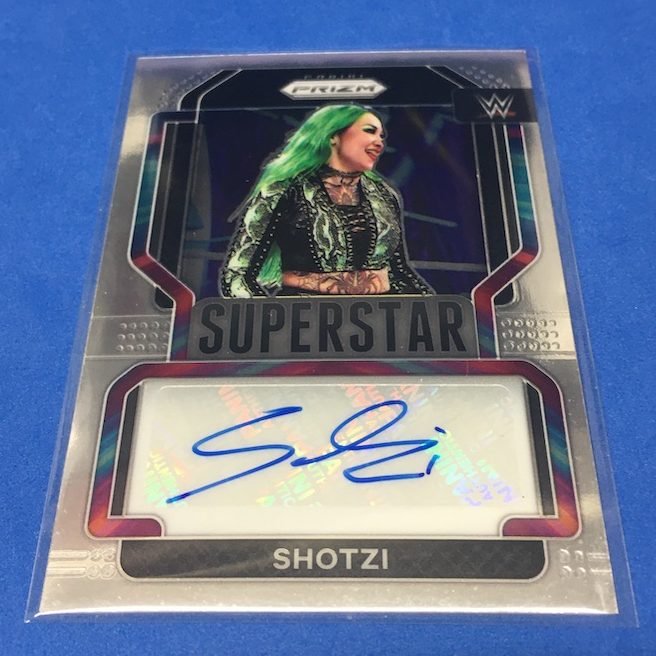 Why it’s Buzz-worthy: Buzz Buys a lot of Shotzi if the price is right and, well, this is just a few of them from recent months where I presented others here in groups but left the hits for later. (Now is later.) The cool part is that top row and other in red are her wearing gear I now own -- check the archives for that story -- while the ink crosses off some brands I hadn't bothered tracking down due to centering issues (hello, Prizms) or rough stock (hello, NXT). Others I just needed or liked the price ... though price doesn't matter as much as I'm a collector. I don't have the funds to collect 'em all for anybody, but I try to get at least one version of everything among the parallel lineup for most cards.
