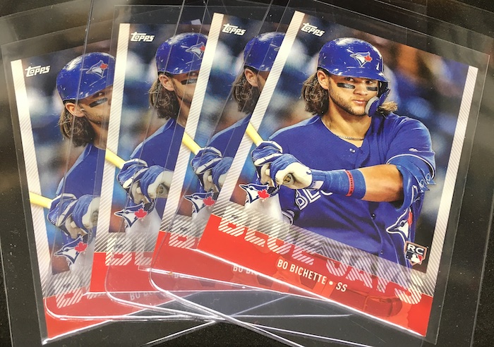 Why it’s Buzz-worthy: This card was the bane of my grading existence as I wanted one to slab but kept getting demolished in varying stupid ways every time I bought one. One time I bought a sealed pack -- these three-card packs came in certain packages of Ute snacks -- the cards shuffled and got pressed dinging a corner here. Another time, it was jammed in a semi-rigid with another card and sent the cheap way via USPS and when it was machined the cards pressed together ... this one on the bottom wasn't flush with the other in the case so it got a nice indent from its buddy. The third time? Bad corner somebody didn't mention ... and so on. For months I kept buying these but putting off my misery story because I still wanted to land one of these -- it might be Bichette's most-obscure non-numbered card from his rookie year -- and I even passed on a few slabbed copies with prices that were either too high or grades that I just didn't agree with. After a fifth or sixth recent failure (like I said, they aren't all in the photo above), I finally grabbed a slab that popped up online a second time at a lower price than during the pandemic prime prices. I'll always watch for these as it's a key card from a food issue promotional set ... something that companies should do more of but probably won't as the market and environment continues to evolve.