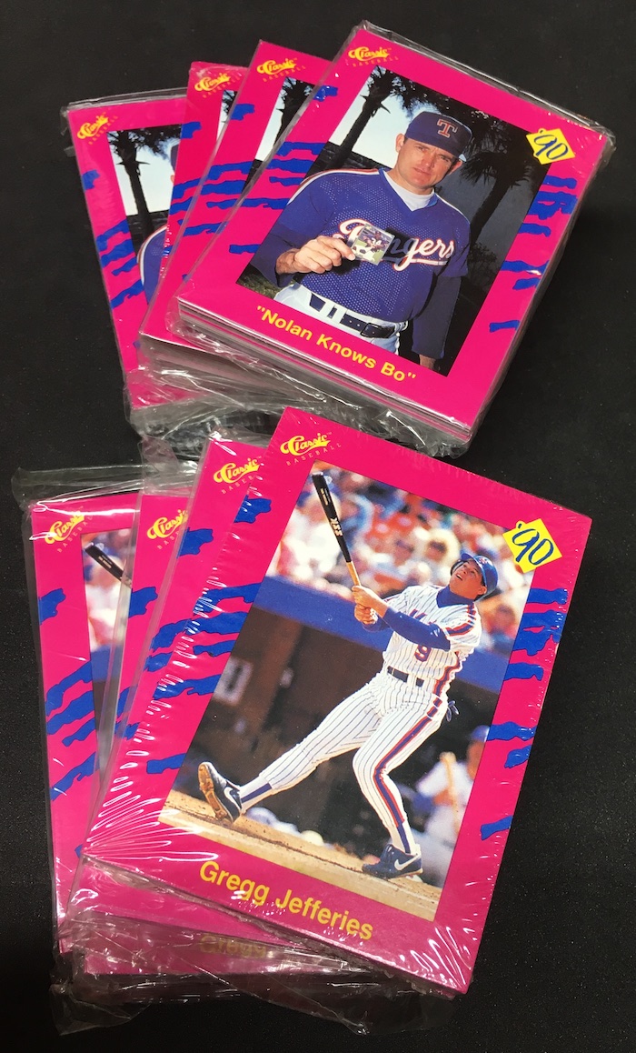 Why it’s Buzz-worthy: These small "packs" are how Classic released almost all of its small MLB sets in the late 1980s and early 1990s as these were clamshelled with other components of a game where the cards were one element. I picked up a nice affordable lot with several releases and a few copies of each set with an eye on possible grading of iconic or quirky cards like the Nolan Ryan card here where he's holding a 1987 Classic Bo Jackson card that meshed his two-sport ways back when he played for Auburn. The packing is not really grading-friendly -- I might only do a couple -- so that experiment was a bit of a bummer, but I figured I'd drop these here as a reminder that some interesting and still off-the-radar stuff exists from back in the day that you may not see often. (And it can be cheap, too.)