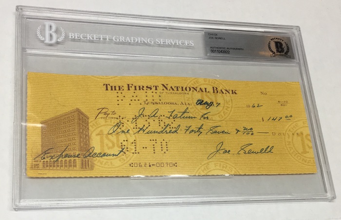 The Item: Joe Sewell autographed check (BAS authentic/slabbed)