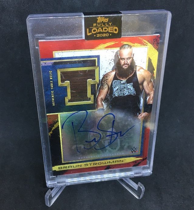 The Card: Braun Strowman 2020 Topps WWE Fully Loaded Red Table Relic Autographs (/5)