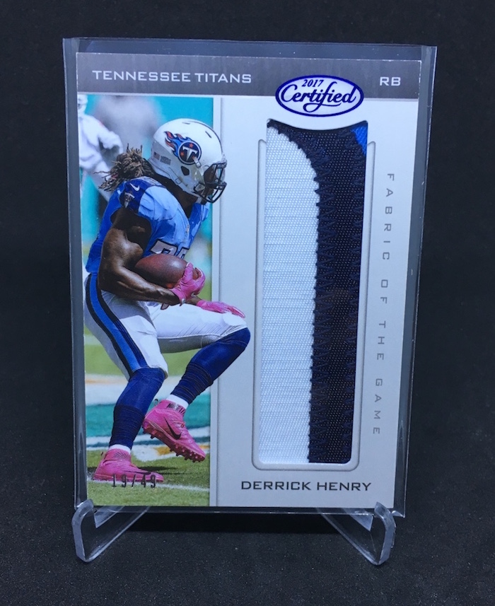 The Card: Derrick Henry 2017 Panini Certified Fabric of the Game Prime (/49)