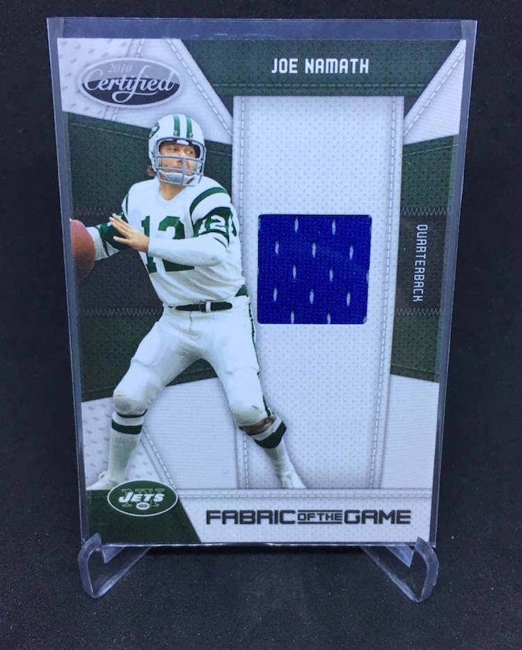 The Card: Joe Namath 2010 Panini Certified Fabric of the Game (/250)