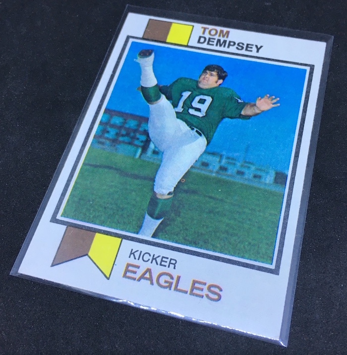 Why it’s Buzz-worthy: This former NFL kicker died from COVID back in April and as I saw the posts about his story -- and his unique place in NFL history -- I looked up his cards. I didn't pony up for one of his Rookie Cards (it's a glorified mug shot in 1970 Topps), but instead I grabbed this fourth-year card for pocket change that shows off what made him different than others in the game. Dempsey was born without toes on his right foot or fingers on his right hand and that helped him become a prolific kicker. He held the NFL record for the longest field goal -- 63 yards -- in 1970 and that stood until 2013. He doesn't have a lot of cardboard and only a handful of autos, but this one is unique enough for my stash thanks to the photo.