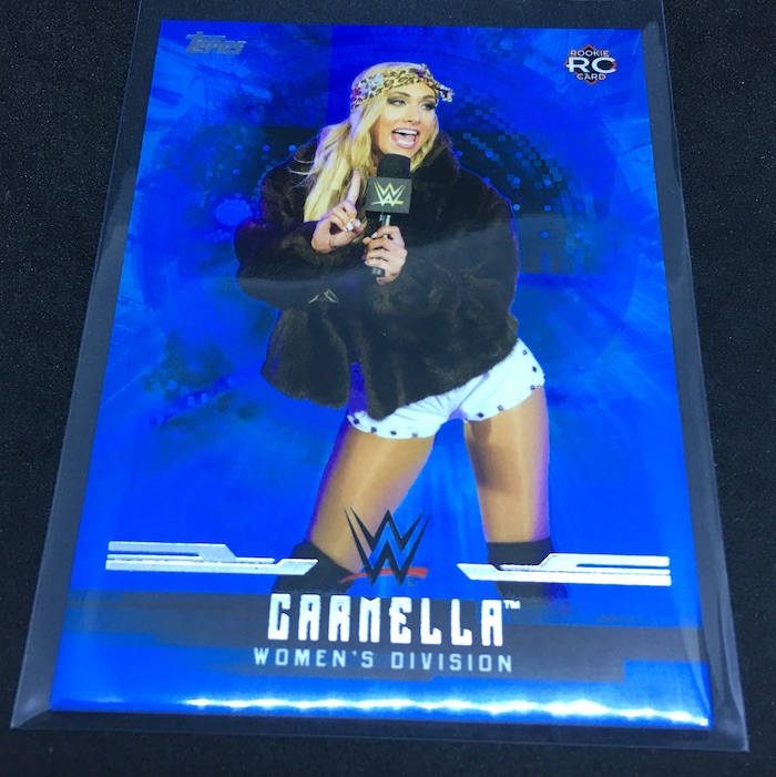 The Cards: Carmella 2017 Topps WWE Undisputed Women's Division, 2018 Topps Heritage Blue Autographs (/50) and 2019 Topps WWE Women's Division Bronze (/75)
