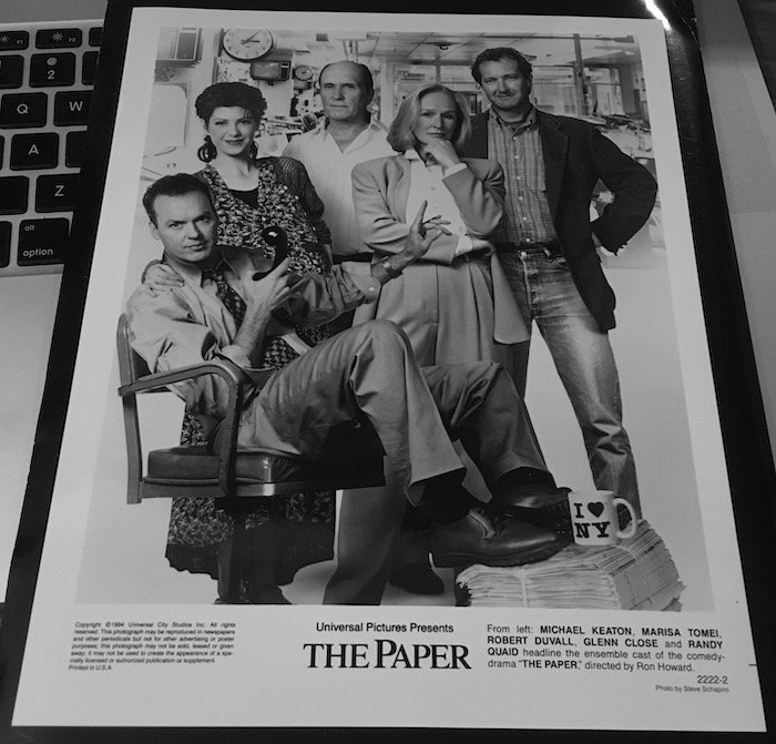 Why it’s Buzz-worthy: This Ron Howard film about a day in the life of a newspaper crew is a fun one if you know that world and it's a whole lot of reality-based save for maybe the printing press fights. (Maybe some of the map discussions. Maybe.) So much has changed in the world since this one (made in 1994), but it's got so much going on and tells the story and re-creates the environment quite well. I have probably bought this press kit -- photos and info sent out to media to publicize the movie -- more than once that's how much I like this one.