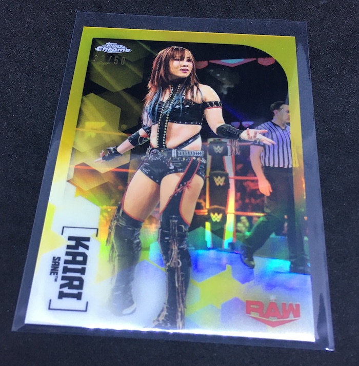 The Cards: Kairi Sane 2018 Topps Heritage WWE Silver (/25), 2018 Topps WWE Slam Attax Live, 2020 Topps Chrome WWE Gold Refractor (/50), 2019 Topps WWE Undisputed Orange (/99), 2018 Topps WWE Undisputed Orange (/99), 2018 Topps WWE Undisputed Green (/50), 2020 Topps WWE Undisputed Green (/50) and 2020 Undisputed base