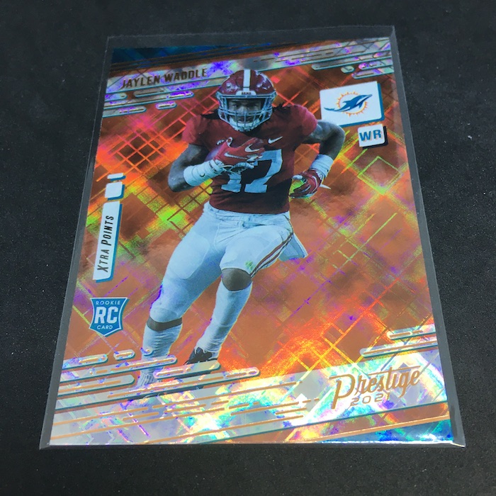 The Cards: Jaylen Waddle 2021 Panini Instant NFL Rated Rookie Retro (/2,231) & 2021 Panini Prestige Xtra Points Diamond