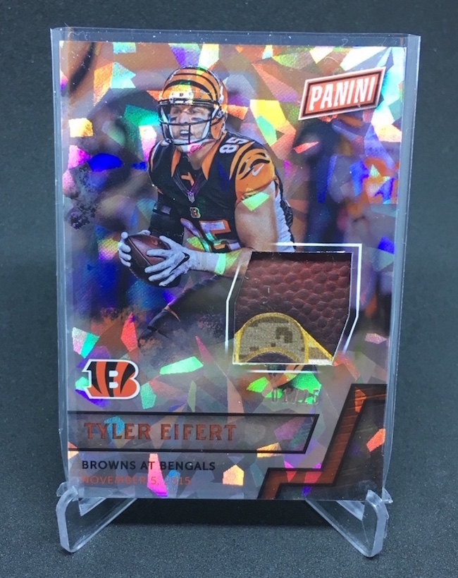 The Card: Tyler Eifert 2016 Panini Father's Day Game-Dated NFL Memorabilia Cracked Ice (/25)