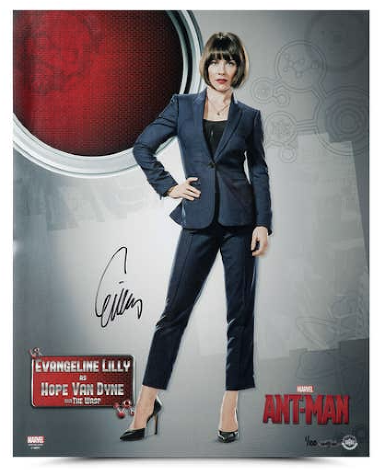 The Card: Evangeline Lilly autographed Ant-Man 16-by-20 photograph (/100) -- via UDA