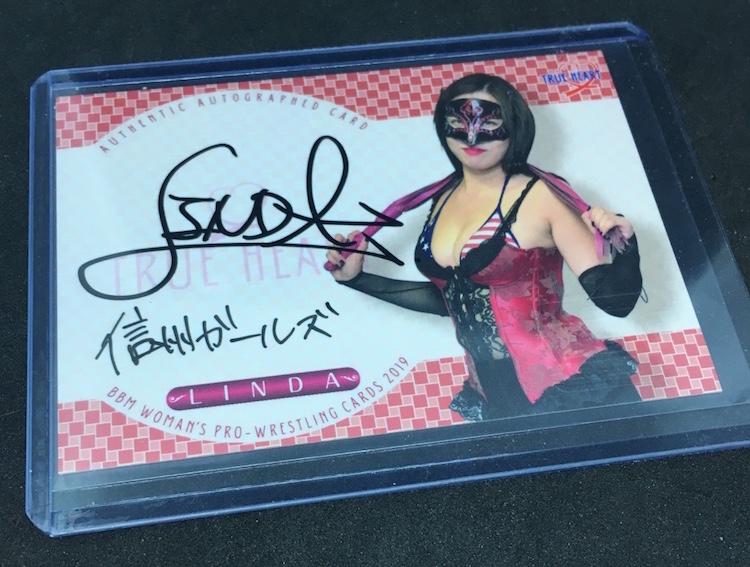 Why it’s Buzz-worthy: I'm told the inscription here is "Shinshu Girls," which is the promotion she works for in Japan and that's one of a few companies where their stars appear all in this one place, BBM's annual women's wrestling set. (Up until this year was known as the True Heart set and it had everybody except for Stardom notables.) I picked this one up last year while grabbing sample cards of various sets from all around the collecting world just to add some variety to the autograph stash. I don't know much about her character, but it looks like she's been active for more than a decade and works in media beyond wrestling. The auto with inscription was why I picked this up -- you can find a lot of creative and really interesting autographed cards from these sets.